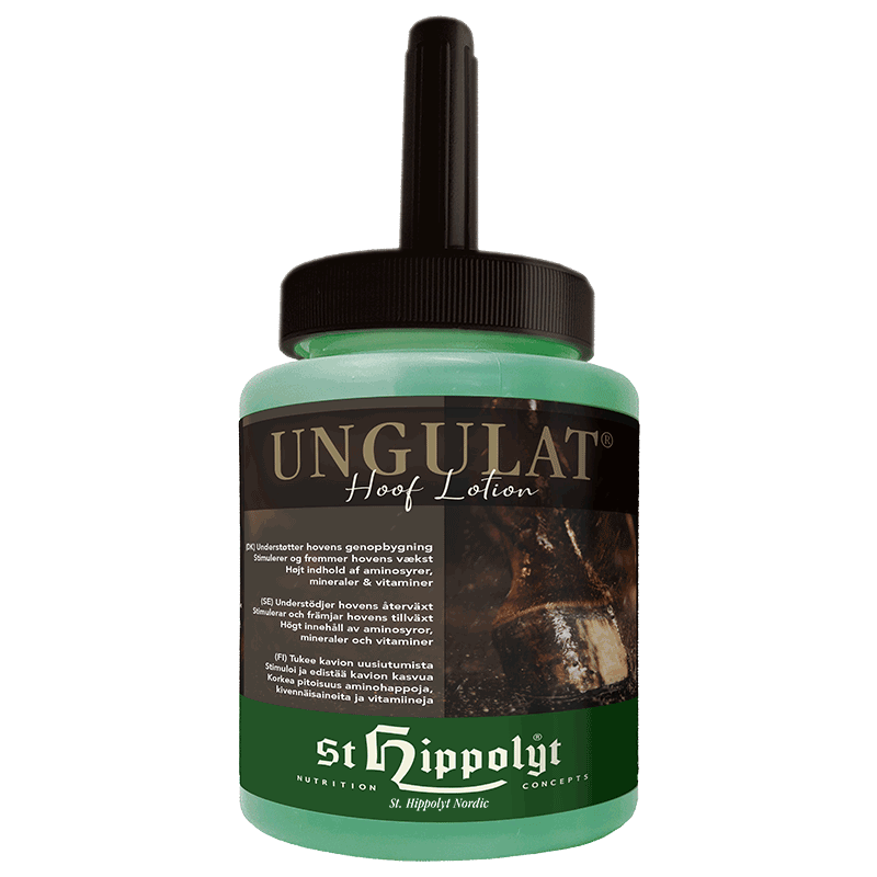 En sådan produkt är Ungulat Hoof Lotion, den absorberas snabbt av hoven och är mycket uppskattad av såväl hästägare som hästar! Först blir hoven glansig, men efter några minuter blir den matt igen – och återfuktad!
