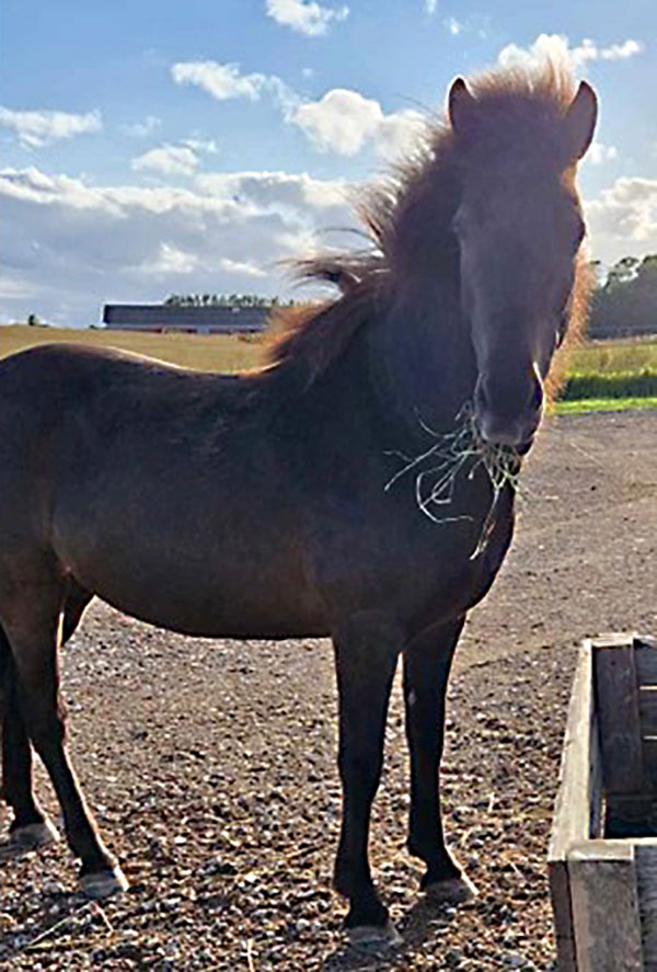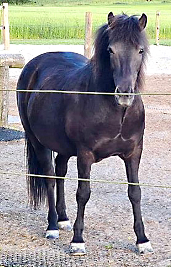 Hösten 2023 väger han 328 kg och går nu utan skor igen. Han är en lättare, starkare och mycket gladare häst!