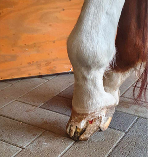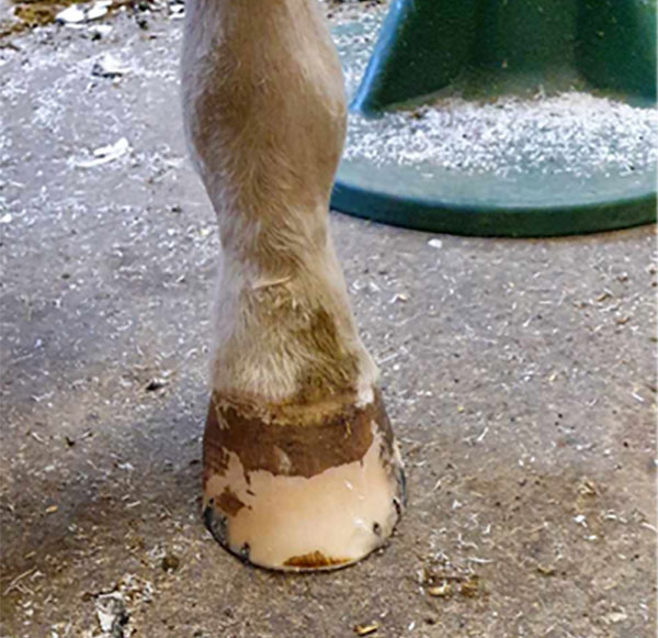 År 2020 blev veterinären tyvärr tvungen att ta bort en stor del av ena hoven på grund av dåligt horn.