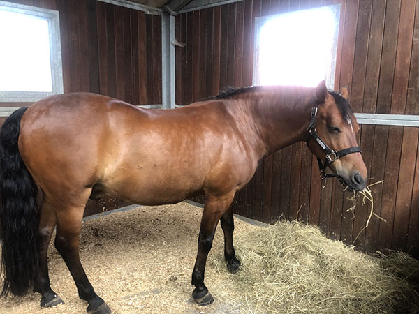 Efter konsultation med foderrådgivare Caroline Thordal ändrades fodret till EquiGard Müsli fördelat över 3 måltider. Redan efter en månad kunde ägaren meddela att hon såg effekt och att Royal började gå ner i vikt. Fettdepåerna försvann efterhand och sadelgjorden kunde spännas in ytterligare några hål!