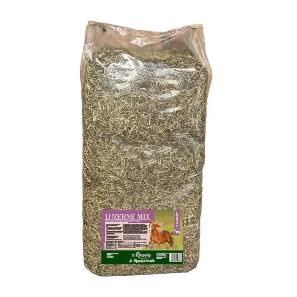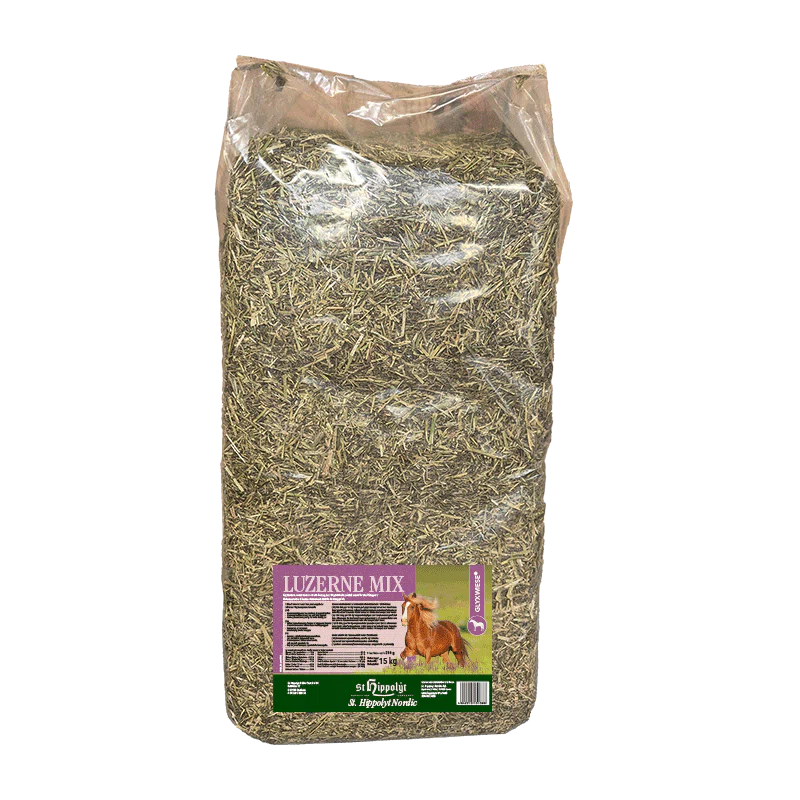 GlyxWiese® Luzerne Mix är rik på aminosyror, råfibrer och värdefulla fettsyror, vilket ger många intressanta användningsområden. Mängden kraftfoder kan minskas och smältbarheten i den totala ransonen förbättras. Genom att blanda den snittade lusernen i fodret ökas volymen, salivproduktionen främjas och därmed stimuleras och understöds matsmältningen.