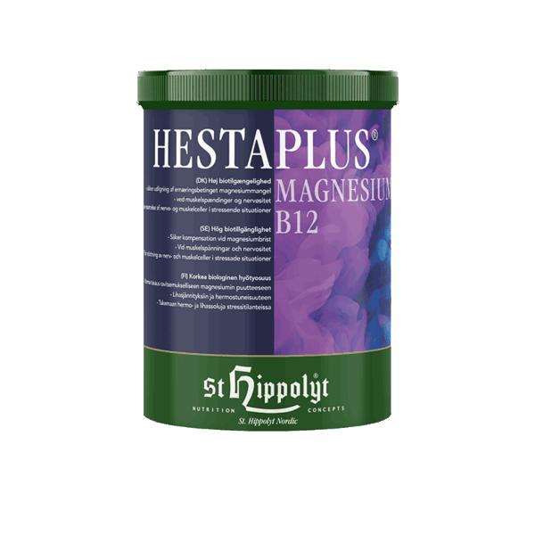Hesta Plus® Magnesium B12 är lämplig för snabb och pålitlig kompensation vid konstaterad magnesiumbrist. En ökad biotillgänglighet av spårämnen genom en naturlig proteinmatris förbättrar magnesiumupptaget, vilket främjar blodcirkulationen och bidrar till att undvika hjärt- och cirkulationsstörningar.