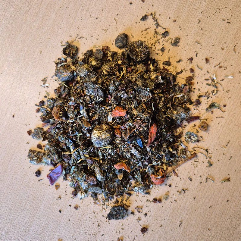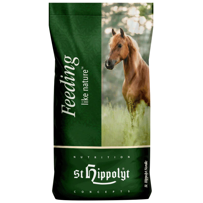 Örtblandningen, som bland annat innehåller fänkål, kamomill och rosmarin, är vald för sin traditionella användning i hästfoder och bidrar till produktens goda smak samt stöd för matsmältningen.