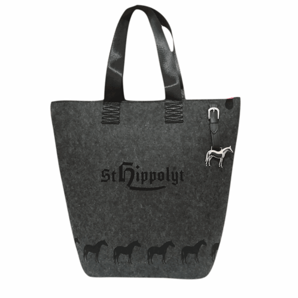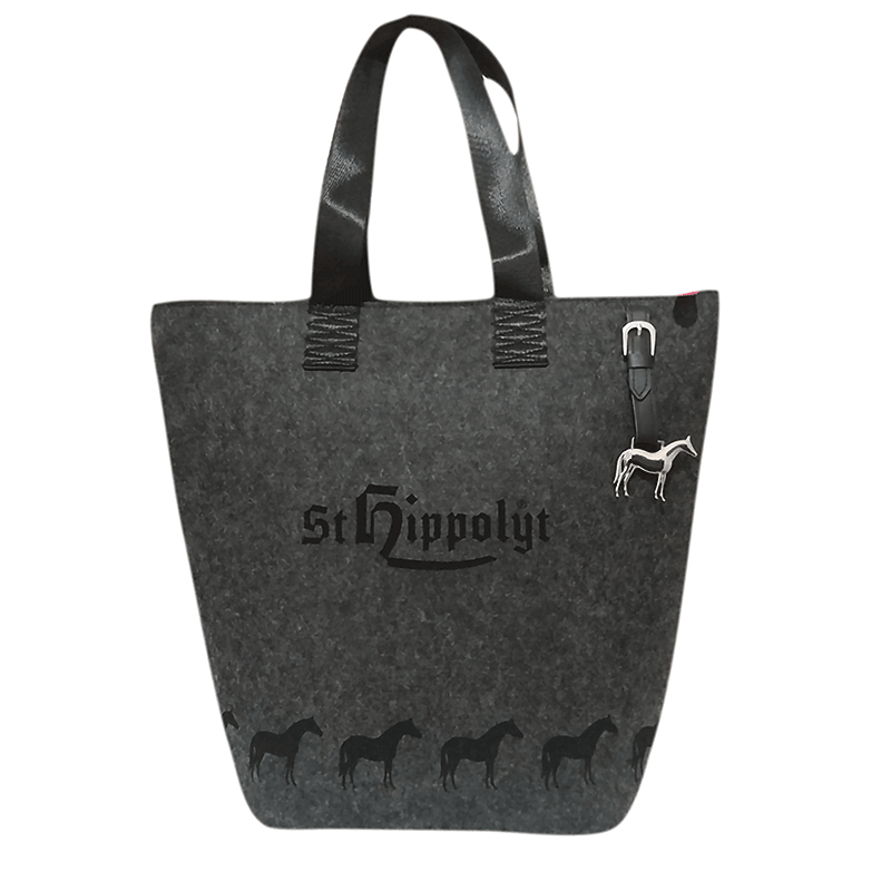 Svart/grå filtväska med St. Hippolyts logga.