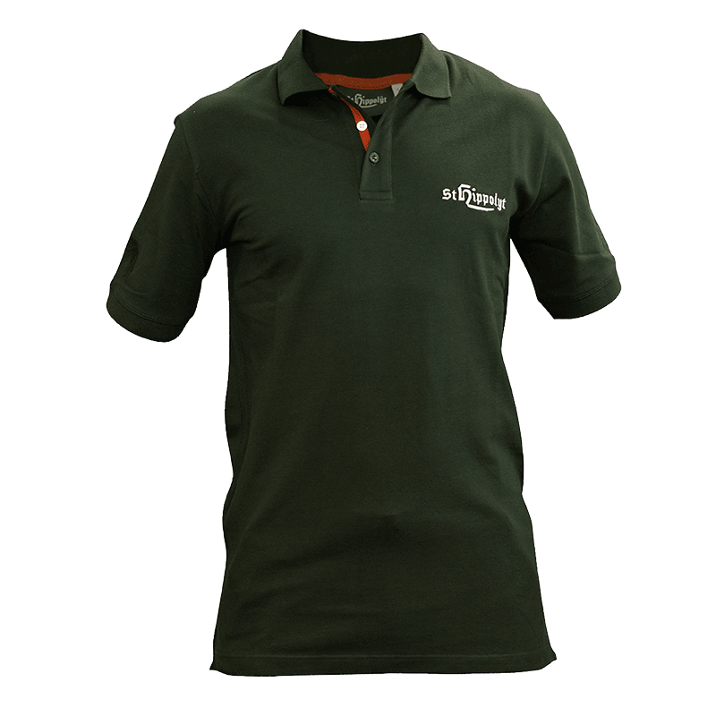 Polo-shirt – Herremodel i grönt med broderi på bröst, ärmar och rygg. Denna polo-shirt är ett absolut blickfång i alla stall.