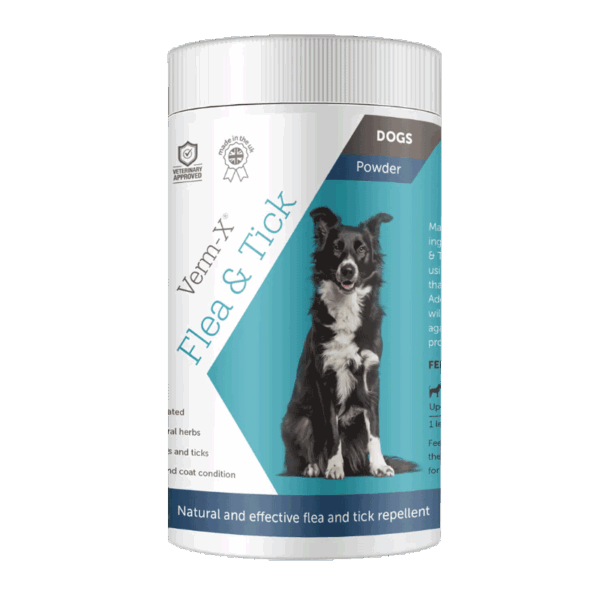 Verm-X® Flea & Tick är ett pulver tillverkat av 100 % naturliga aktiva ingredienser i en koncentrerad formel som naturligt avvisar loppor och fästingar.